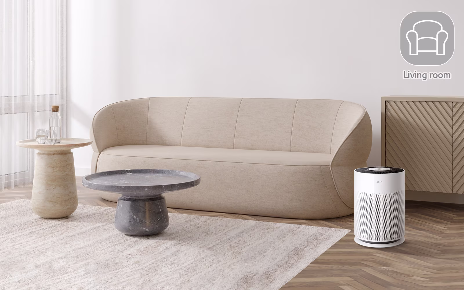 LG PuriCare™ purifies the air 360˚ around you, in every direction, no matter where you place it.