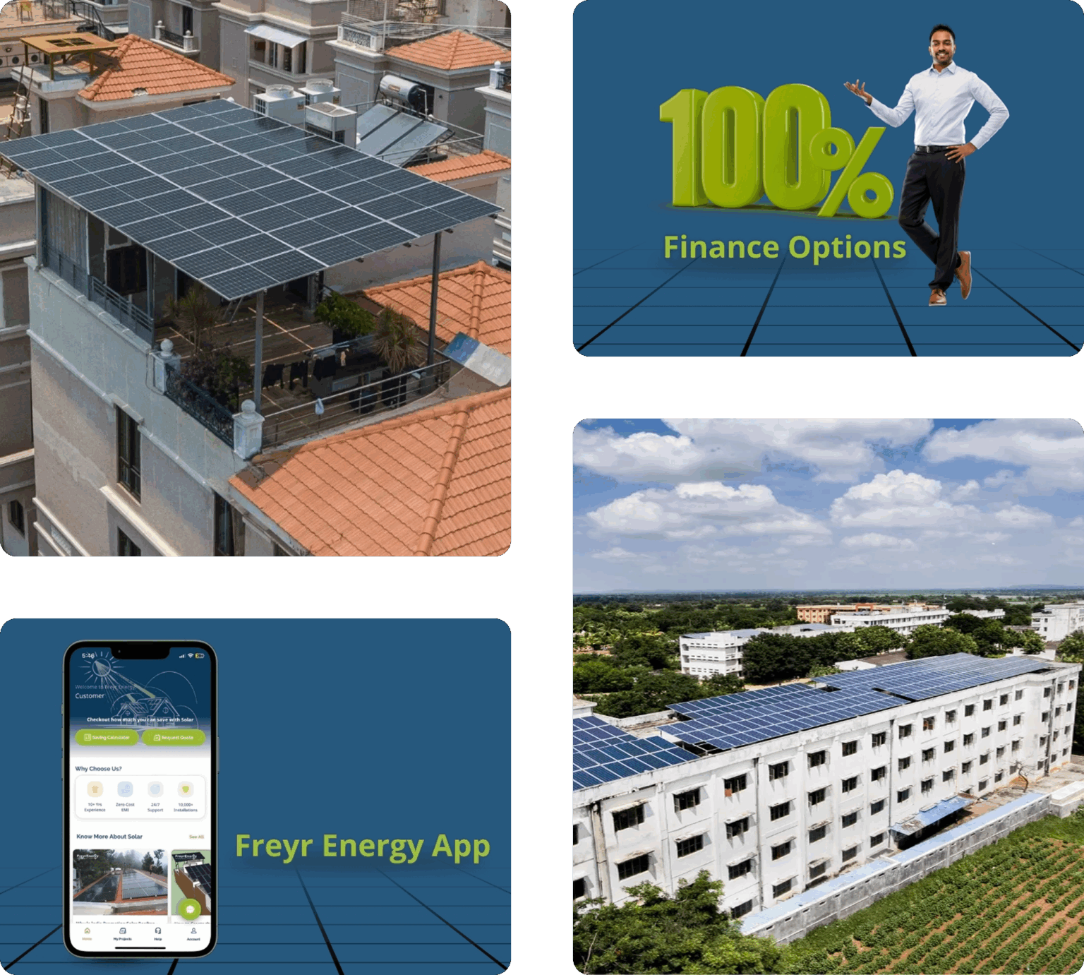 We are empanelled with MNRE and have installations across India. Our new Freyr Energy app provides a seamless solar adoption experience and provides 24×7 support. With 100% finance options, we are making rooftop solar accessible to everyone.