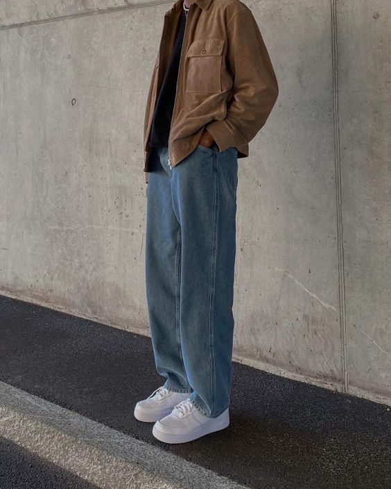 - Footwear can be quite varied, chunkier sneakers like Air Force 1s work, dad shoes like New Balance 530s, and also classic skate shoes like Vans are all acceptable
