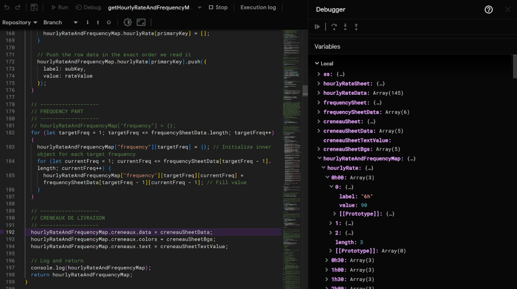 The Apps Script debugger lets you pause your code at any point and step through it line-by-line to see what’s really happening. You can inspect variables, monitor execution flow, and identify exactly where your script is misbehaving.